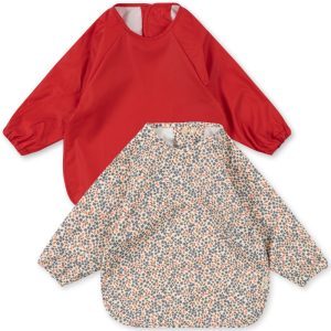 Konges Sløjd 2pk dinner bib with sleeves – champ bleu/barbados cherry