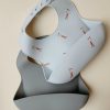 Praktiske smekker i silikon som er enkle å holde rene og lette å ta med i stellevesken. Lomme som samler opp alt som ikke kommer inn i munnen!