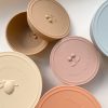 2-pack silikonbollesett med sugelokk og en preget frukt inni og på hvert lokk. Den mindre bollen passer inn i den større bollen.