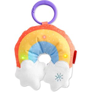 Supersøt leke til babygymmen eller som barnevognspynt med liten rødbet og en løk med bjeller inni som rangler søtt og stimulerer barnets hørsel.