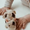 Soft activity toy made from 80 percent lambswool and 20 percent nylon. Designed with a bell inside, that makes a gentle ringing sound when the baby plays with the toy. Features a practical knitted hanger.