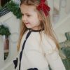 «Myk ullcardigan med sløyfedetaljer og perlemorsknapper – klassisk, varm og feminin.»
