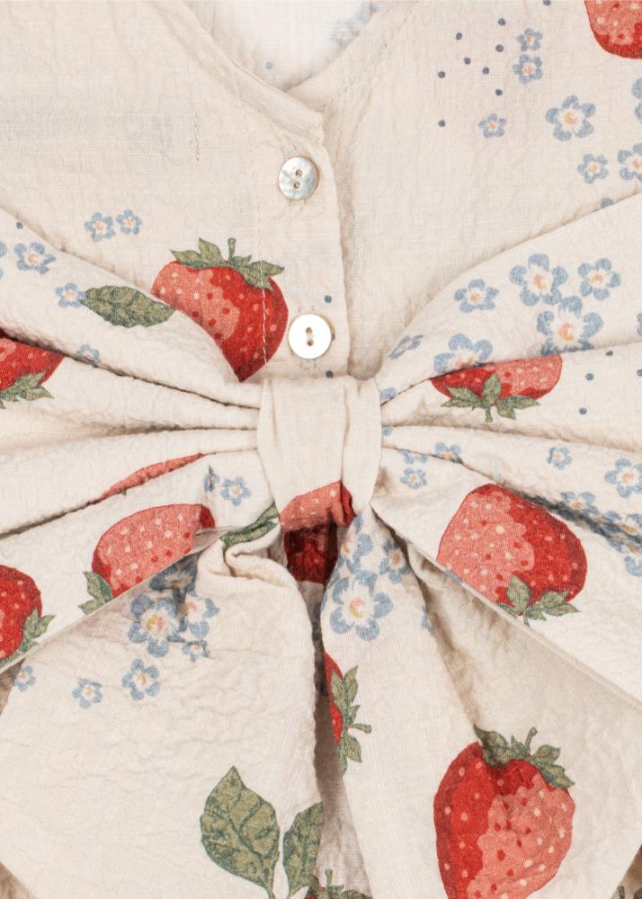 Sommerkjole i økologisk bomull med stor sløyfe bak – perfekt til varme dager og fine anledninger.