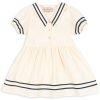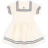 Denne nydelige matroskjolen fra Konges Sløjd er både klassisk og komfortabel, laget i økologisk bomull for et mykt og pustende stoff som passer perfekt til barnets sensitive hud. Den har et søtt sjømannsinspirert design med en elegant krage og knappedetaljer. Denne skjønne kjolen er perfekt for både hverdagsbruk og spesielle anledninger, og gir et stilfullt og tidløst uttrykk.