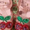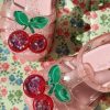 Strandsandaler med klassisk stropp og spennelukking. Designet med dansende glitter og et signatur Konges Sløjd kirsebær på toppen. Kan også fint brukes som vanlige sandaler til kjoler ogg shorts.