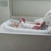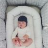 Babynest for tvillinger! Tvillingene kan fortsatt ligge tett inntil hverandre slik de lå i magen. Dette myke babynestet er produsert i 100% økologisk bomull, en myk og deilig base som omkranser babyene. Det gir babyene en følelse av trygghet, samvær og komfort når de er helt nyfødte. Perfekt til å ha i sengen for at babyene skal sove sammen, passer fra nyfødt. Passer også fint på sofa, i tvillingvogn og i vugge. Babynestet er sydd så det er lukket hele veien rundt kanten.