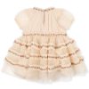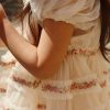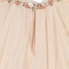 En nydelig tyllkjole med elegant volum og et romantisk uttrykk. Joelle-kjolen har lagdelt skjørt, korte puffermer og vakre blomsterapplikasjoner – perfekt til bursdag, selskap og andre fine anledninger. Lukkes bak med en perlemorsknapp.