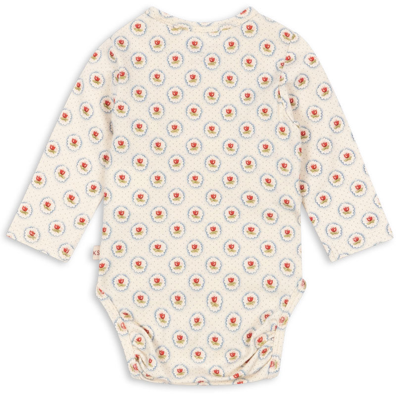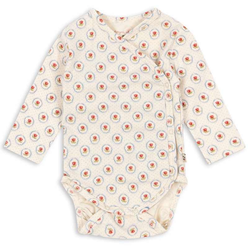 En myk og behagelig omslagsbody med lange ermer, perfekt til de aller minste. Omslagsdesignet gjør den enkel å ta på og av uten å trekke plagget over hodet på babyen.