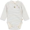 En myk onesie med lange ermer, perfekt til de aller minste. Omslagsdesignet med trykknapper langs sidene og i skrittet gjør det enkelt å kle på og av babyen.