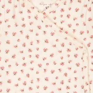 Myk body for nyfødte i en lett bomullsblanding med et hint av stretch. Designet med omslagslukking som har trykknapper langs kroppen og bena for enkel påkledning.