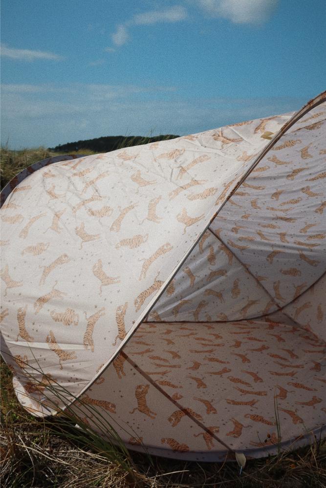 Lite og praktisk pop-up strandtelt med UV-beskyttelse – perfekt for de minste på solrike dager. Mini beach tent gir skygge og et trygt lite sted for lek og pauser fra solen.