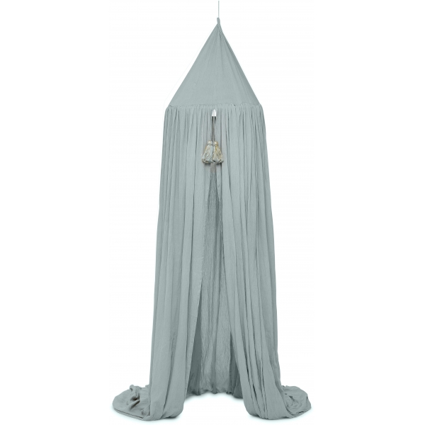Konges Sløjd sin sengehimmel er «a little piece of heaven» der den lager en superkoselig og rolig plass for de små. Kan brukes hengende fra taket over sengen eller fritt i rommet slik at den skaper en lekeplass på et mykt teppe. Like fin uansett hvordan den blir brukt. Dusty farger og florlett muslin-stoff gir en nydelig sky-følelse.