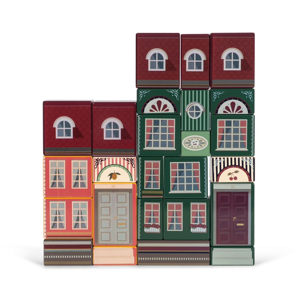 La kreativiteten blomstre med disse byggeklossene i tre fra Konges Sløjd! Settet inneholder 25 klosser som lar barnet bygge sitt eget lille hus – enten etter inspirasjonen på esken eller i helt egne fantasifulle versjoner.