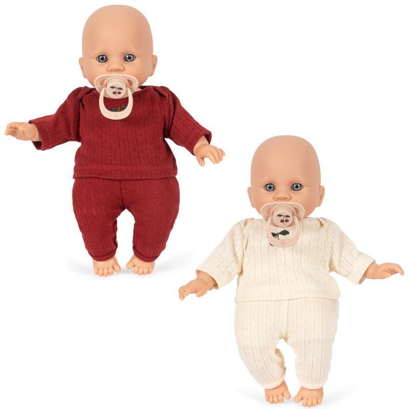 Søtt dukkesett i praktisk 2-pack – den perfekte gaven til små dukkeforeldre! Begge dukkene har myk kropp, er kledd i todelte bomullsett og kommer med beroligende smokker. Perfekt for rollelek, stell og kos.