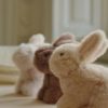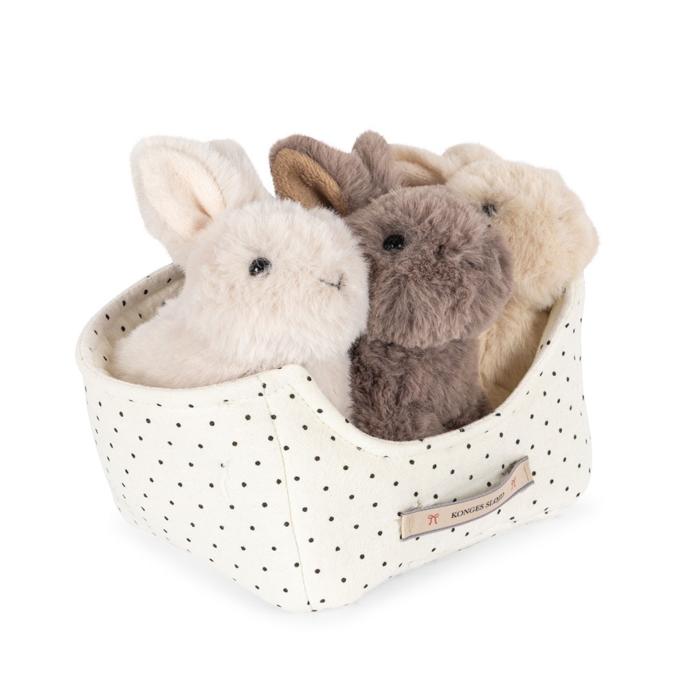 Tre av de mykeste små kaninene du kan forestille deg. Disse søte og fluffy vennene kommer i en polstret liten seng som både er myk og dekorativ.