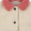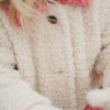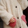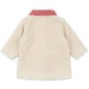 Myk og varm kåpe i klassisk silhuett med avrundet krage, frontlommer og knappelukking.