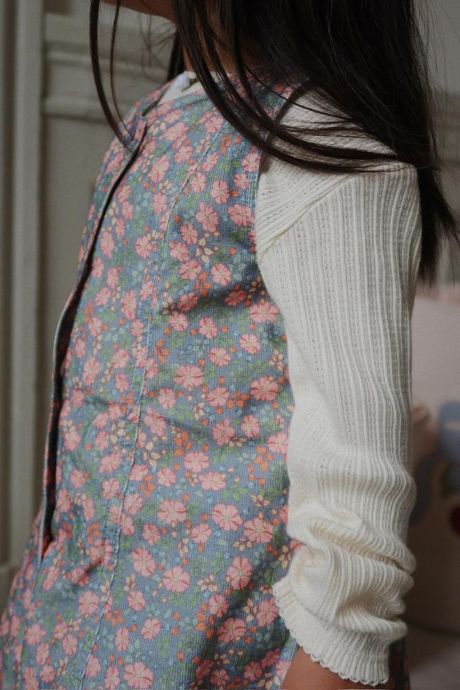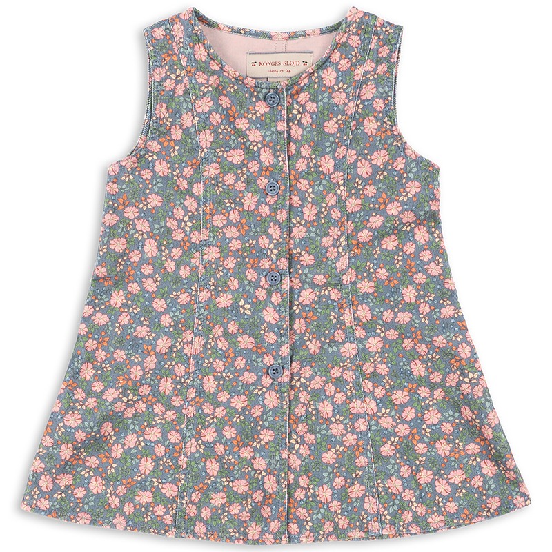 Nydelig ermeløs kjole laget i en fin kordfløyelskvalitet med børstet overflate som føles ekstra myk mot huden. Designet med knapper hele veien foran, som gir et tidløst og sjarmerende uttrykk.