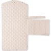 Nydelig og praktisk stelleunderlag fra Konges Sløjd, med trykk-knapplukking som gjør det enkelt å håndtere med bare én hånd. Stelleunderlaget er quiltet design med mykt vattert fyll. Det har praktiske fold-ut-lommer til bleier, klesskift og stelletilbehør. Kan brettes sammen og blir så liten at det får plass i vesken, legges under vognen eller i en bag.