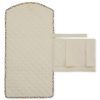 Nydelig og praktisk stelleunderlag fra Konges Sløjd, med trykk-knapplukking som gjør det enkelt å håndtere med bare én hånd. Stelleunderlaget er quiltet design med mykt vattert fyll. Det har praktiske fold-ut-lommer til bleier, klesskift og stelletilbehør. Kan brettes sammen og blir så liten at det får plass i vesken, legges under vognen eller i en bag.