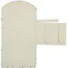 Nydelig og praktisk stelleunderlag fra Konges Sløjd, med trykk-knapplukking som gjør det enkelt å håndtere med bare én hånd. Stelleunderlaget er quiltet design med mykt vattert fyll. Det har praktiske fold-ut-lommer til bleier, klesskift og stelletilbehør. Kan brettes sammen og blir så liten at det får plass i vesken, legges under vognen eller i en bag.
