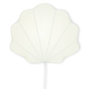 Nydelig uttrykksfull skjell-lampe i stoff som gjør seg utrolig godt på barnerom med nordisk stil. Lampen har dimmer, så den kan være både nattlampe og leselampe.