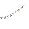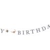 materiale: Cups: paper. Plates: paper. Napkins: paper. Garland: paper and cotton string. Balloon: aluminum foil. Cake toppers: paper on a bamboo stick.
