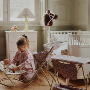 Fin og realistisk vippestol laget for dukker – perfekt til små som elsker rollelek! Stoffsetet er laget i myk bomull med polstring av polyester for ekstra komfort, og kan enkelt tas av og maskinvaskes. Den solide rammen er laget i metall for god stabilitet.