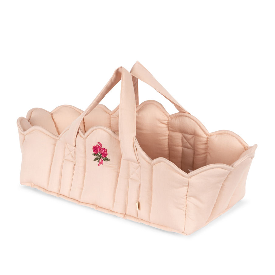Skjønn polstret dukkelift til dukker og bamser – perfekt for koselige lekestunder både hjemme og på tur. Designet med komfortable bærestropper, myk polstring og dekorative bølgekantede sømmer. Barnet kan enkelt bære med seg favorittdukken – akkurat som en ekte liten omsorgsperson!