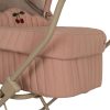 Dukkevogn i vintage stil designet med fire store hjul laget i EVA-materiale for ekstra stabilitet. Har quiltet trykt stoff og en madrass laget av 100% økologisk bomull. Designet med en mykt polstret oppbevaringskurv under liggedelen. Rammen er laget av metall med mykt håndtak. Dukkevognen kommer ferdig montert og er enkel å slå sammen og oppbevare.