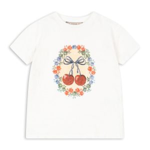 T-skjorte i linblanding med myk tekstur. Klassisk design med korte ermer og rund hals. Trykknapp-åpning på skulderen opp til 18 måneder.