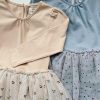 Nydelig kjole med puffermer og 3-lags tyllskjørt som raskt blir prinsessens favoritt til høytider og bursdager! Lukkes i nakken med en perleknapp. Designet med folietrykk og et utsvingt snitt. Overdelen er som en body med knapping nede.