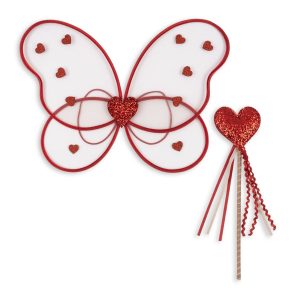 Kostymet har et hjerteformet design i delikate rosatoner, med lette vinger og en matchende tryllestav som fullfører det magiske uttrykket.