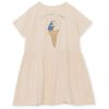 Superfin t-shirt kjole til de minste, kult print på magen. Rund hals og korte ermer.