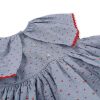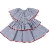 Nydelig serie for de minste i myk økologisk bomull. 2-lags tynt og behagelig stoff, med rysjer, broderier og en stor rund krage. Perleknapper bak.