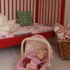 - Babydukke i dekorativ jordbærkjole