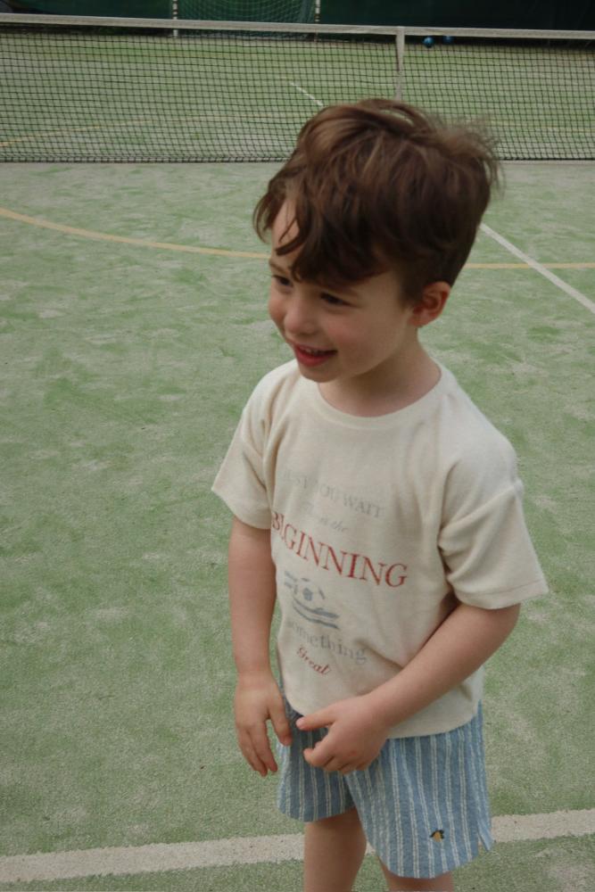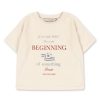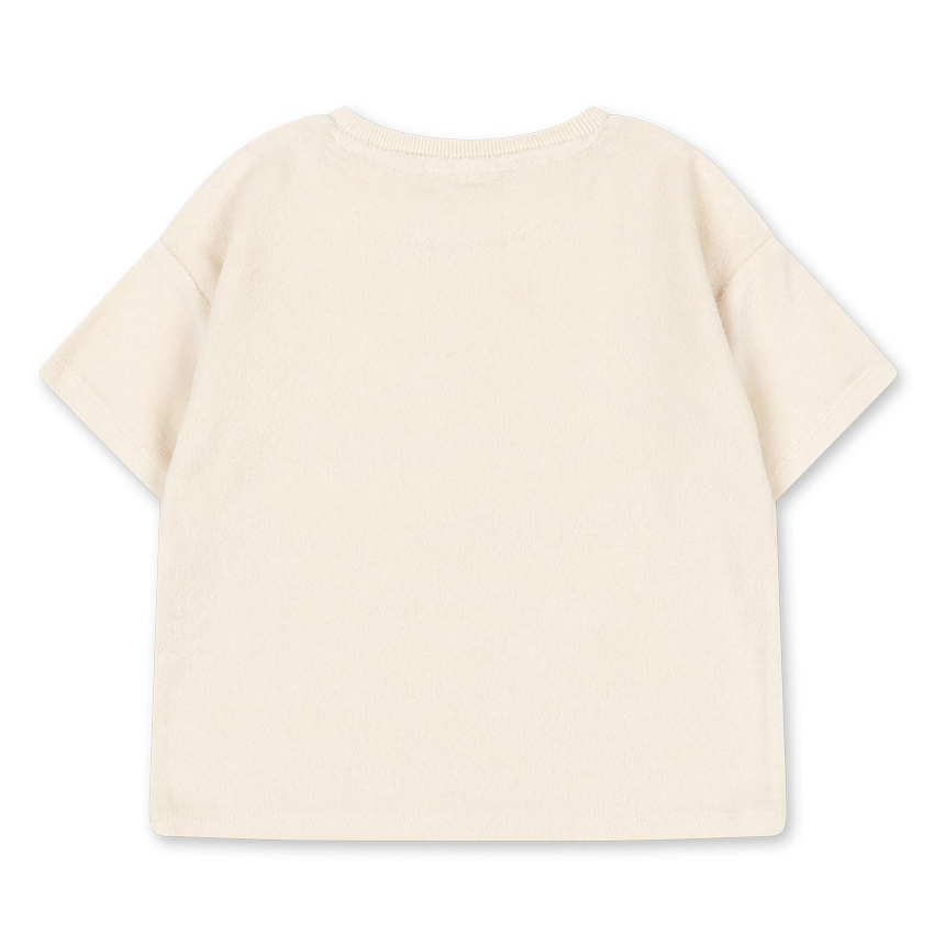 Myk t-skjorte laget i fluffy frotté av økologisk bomull. Designet med en avslappet silhuett, senkede skuldre og boxy passform for et moderne og komfortabelt uttrykk. Perfekt til både lek, avslapning og hverdagsbruk.
