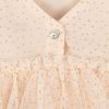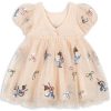 En voluminøs og nydelig tyllkjole med korte puffermer og dekorativt paljettbroderi. Kjolen har et løst snitt med et skjørt som svinger fint når barnet leker og danser. Mykt bomullsfôr gjør den behagelig å ha på.