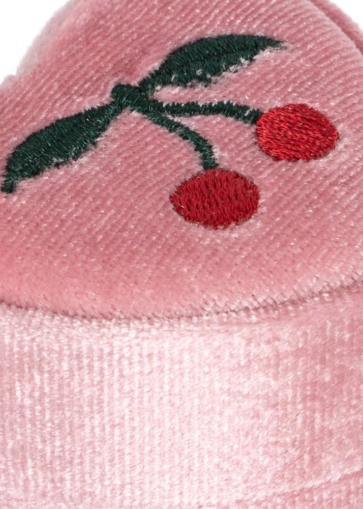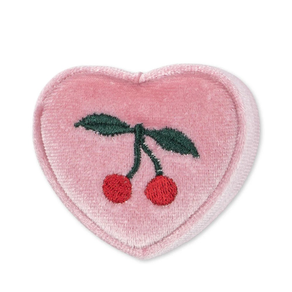 Et nydelig smykkeskrin i myk velur med et søtt halskjede inni. Halskjedet har et fint Konges Sløjd-anheng formet som kirsebær, og er helt trygt å bruke for barn. Perfekt som gave til små som elsker å pynte seg.