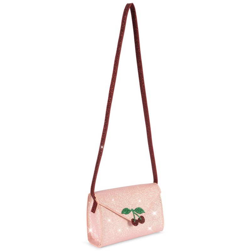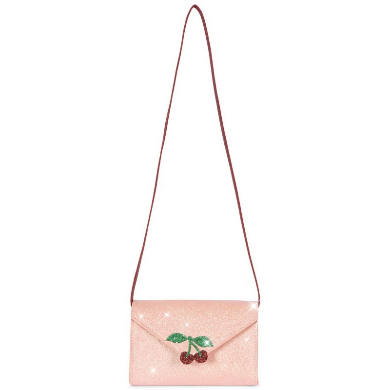 En søt crossbody-veske formet som en konvolutt. Vesken er dekket med glitter over det hele og har en praktisk trykknapplukking i front. Perfekt til små skatter og tilbehør.