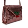 Glitterveske med trykkknapplukking foran og slank skulderstropp.