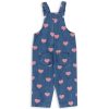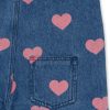 Myk denimoverall med signaturlogoknapper. Har trykt stoff på innsiden av den øvre delen.