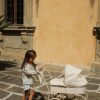 Sjarmerende dukkevogn i vintage-stil i en mindre størrelse som er enkel for små dukkeforeldre å manøvrere. Vognen er designet med fire store hjul som gir god stabilitet og gjør den lett å trille. Det vatterte stoffet og de delikate bølgekantene gir et klassisk og tidløst uttrykk.