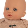 Denne herlige dukken er perfekt for små armer å klemme! Den har en myk kropp og er kledd i et nydelig sett i økologisk bomull – en bluse og bukse som er enkle for barnet å ta av og på selv. Med følger også en liten smokk som kan “trøste” dukken på ekte vis.