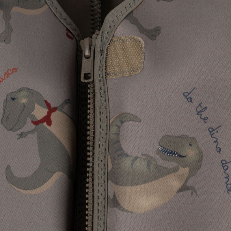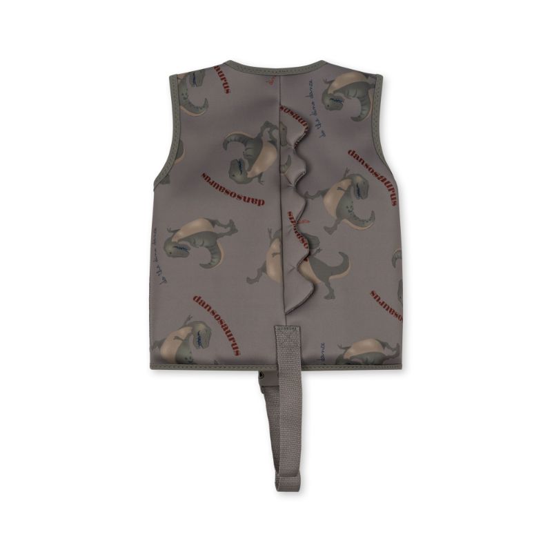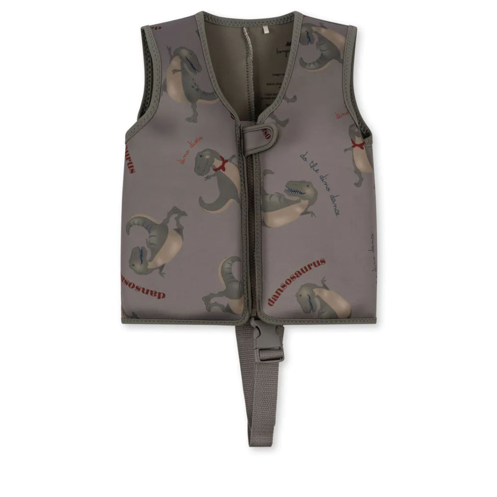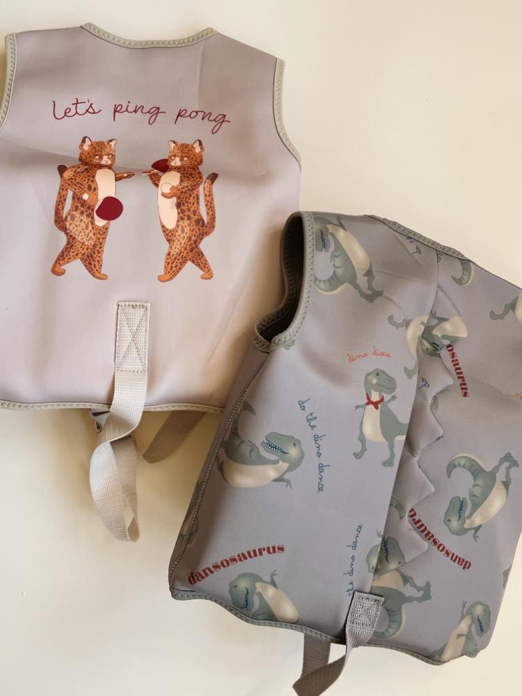 Flytevest laget i 80 % neopren og 20 % polyesterfôr prydet med en skulderrysj. Designet med både glidelås og borrelås. Har en spennet sikkerhetsstropp slik at barnet ditt aldri kan skli ut av vesten.