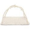 Stativet har et nydelig print på cremefarget bunn, så fin at den kan stå fremme på stuen! Buene er i bambus og leketeppet har løkker på langsidene hvor man kan feste leker og f.eks. en koseklut. Heng leker i buene som kan stimulere og utvikle barnets sanser og trene de motoriske ferdigheter og koordinasjon, så blir dette en populær babygym. Leker kan kjøpes separat og følger ikke med stativet.