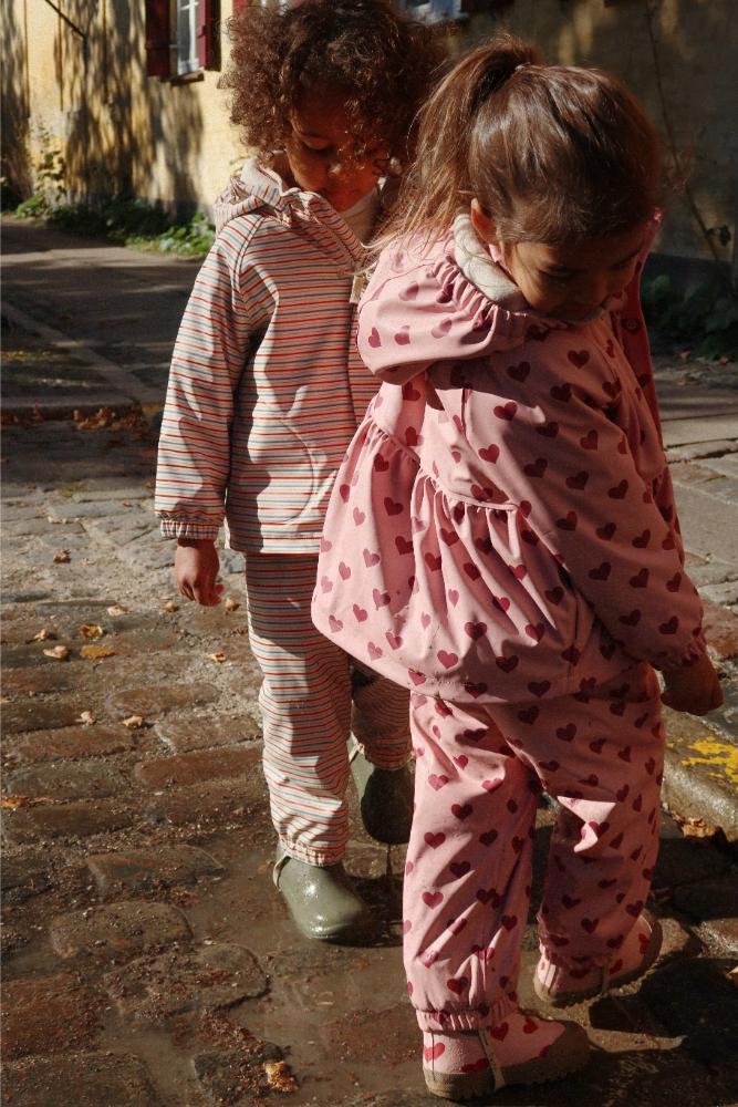 - Fra størrelse 5–6 år: regnbukse med elastisk liv for enkel av- og påkledning