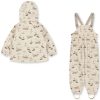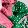 Overflaten er behandlet med BIONIC FINISH ECO-coating, en svært pustende og vannavvisende impregnering. Bukser med seler og strikk under bena så de sitter godt på barnet. Jakken har avtagbar hette festet med knapper og lommer. Elastiske mansjetter på hender og føtter sørger for at regnsettet holder seg godt på plass. Jakken lukkes med både glidelås og knapper. Både jakke og bukse har en praktisk hengeløkke på innsiden. PU-kvaliteten er veldig slitesterk og lett å rengjøre. Alle sømmer er teipet.