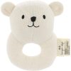 En søt liten rangle formet som en ring med et elefanthode. Spesielt god å holde i for små hender, trener griperefleks og motorikk. Ranglen har en liten raslelyd inni, og gir en svak lyd når den blir beveget på. Strikket i 100% økologisk bomull og er fylt med polyester. Søt barselgave, babyshower mm som den nyfødte vil få stor glede av.