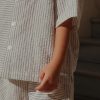 Disse lette og luftige buksene i seersucker-kvalitet er både stilige og komfortable. Den naturlige krøllede strukturen gir en avslappet look, og stoffet er mykt og pustende – perfekt for varme dager. Buksen har elastisk midje, rette ben og en søt baklomme med RHW x Konges Sløjd-logo som en eksklusiv detalj.