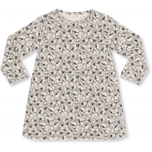 Supersøt kjole til små snupper. Myk og deilig som en T-skjorte, ingenting som er stivt eller stikker/strammer. Hele kjolen er overøst med magnoliaprint med vakre blomster! Med matchende strømpebukser blir denne en favoritt!